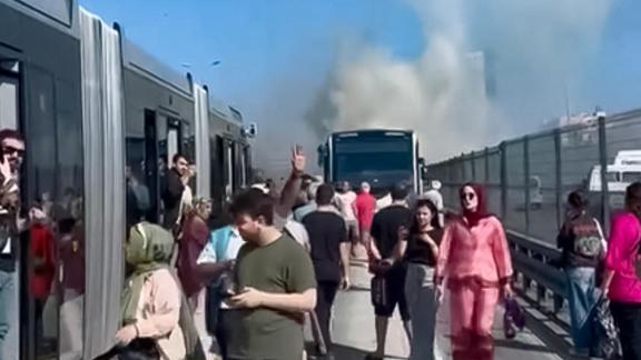 Esenyurt'ta seyir halindeki metrobüste çıkan yangın söndürülürken, seferler bir süre aksadı.