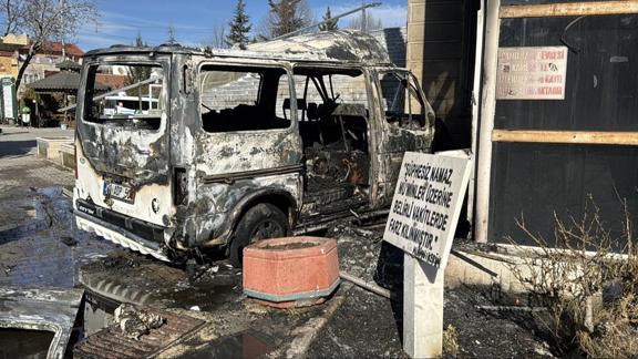Eskişehir'in Tepebaşı ilçesinde, park halinde bulunduğu cami bahçesinde kendiliğinden hareket edip merdivenlere çarparak alev alan kamyonetteki 4 çocuk hafif yaralandı.