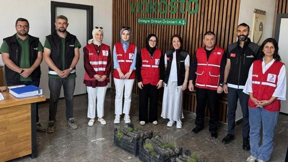 Seydiler Organize Sanayi Bölgesi'nde orman emvali işleyen bir fabrikanın sahipleri, Türk Kızılay'a fidan bağışında bulunmak istedi.