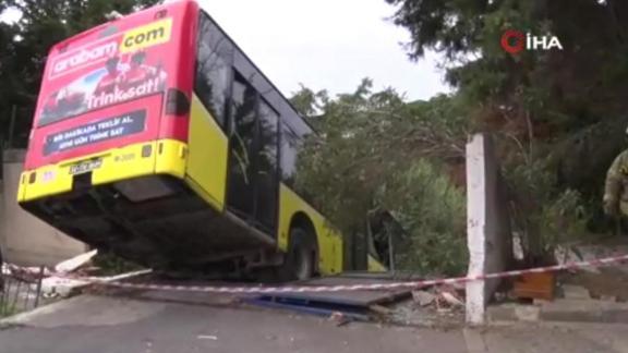 Olay, Üsküdar Barbaros Mahallesi'nde sabah saatlerinde meydana geldi. Edinilen bilgiye göre, yokuş aşağı seyir halindeyken freni patlayan İETT otobüsü sürücüsünün kontrolünden çıkarak yolun sonunda bulunan istinat duvarına çarptı.