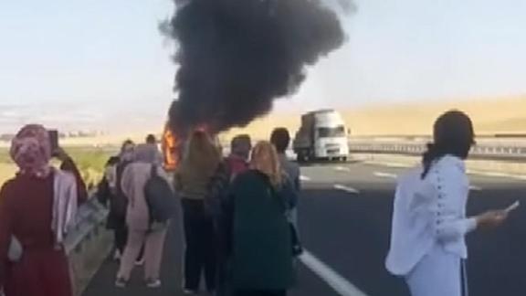 SEYİR HALİNDEKİ YOLCU OTOBÜSÜ YANDIArkadan gelen başka bir sürücünün uyarısıyla yangını fark eden şoför, otobüsü emniyet şeridine çekerek yolcuları tahliye etti. Çevredekilerin ihbarı üzerine olay yerine itfaiye, jandarma ve sağlık ekipleri sevk edildi.