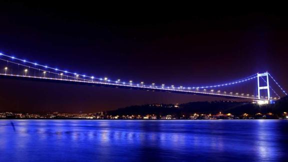 Fatih Sultan Mehmet (FSM) Köprüsü ile Yavuz Sultan Selim Köprüsü, 2 Nisan Otizm Farkındalık Günü'ne dikkati çekmek amacıyla mavi renkle aydınlatıldı.