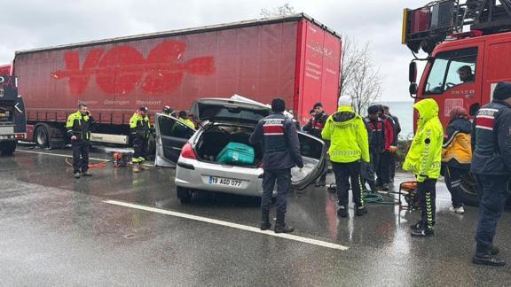 Karadeniz Sahil Yolu'nun Hopa-Kemalpaşa arasındaki Kopmuş mevkisinde, İ.A'nın kullandığı 19 AGD 077 plakalı otomobil, park halindeki yabancı plakalı tıra çarptı.