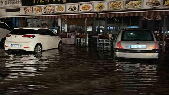 Fethiye'de etkili olan kuvvetli yağış nedeniyle cadde ve sokaklar göle dönerken, birçok işyeri ve evi de su bastı.