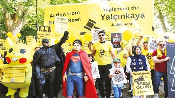 Fransa'nın Strazburg şehrindeki Avrupa İnsan Hakları Mahkemesi (AİHM) önünde toplanan FETÖ mensupları Türkiye aleyhinde gösteri yaptı. FETÖ elebaşı Fetullah Gülen'in manevi oğlu olarak bilinen Enes Kanter ve Kemal Kılıçdaroğlu'nun makamında ağırladığı 15 Temmuz darbe girişimi davasında hüküm giyen Taha Furkan Çetinkaya'nın annesi Melek Çetinkaya da gösteride yer aldı.