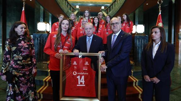 Milli takım oyuncularına hediye veren Erdoğan, pasör çaprazı Melissa Vargas'ı tebrik ederek ailece onur duyduklarını, kütörlüğünü hayranlıkla seyrettiklerini vurguladı.