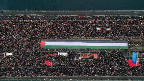 İnsan ve Medeniyet Hareketi Genel Merkezi'nde gerçekleştirilen basın toplantısında, Filistin'e Destek Platformu çatısı altında bir araya gelen STK temsilcileri, 5 Ekim Pazar günü Ayasofya Camii'nden Eminönü Meydanı'na yapacakları yürüyüşe katılım çağrısında bulundu.