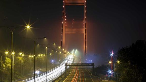 Önemli günlerde renk ve ışık gösterileriyle aydınlatılan FSM Köprüsü bu kez lösemiye dikkati çekmek amacıyla turuncu renkle aydınlatıldı.