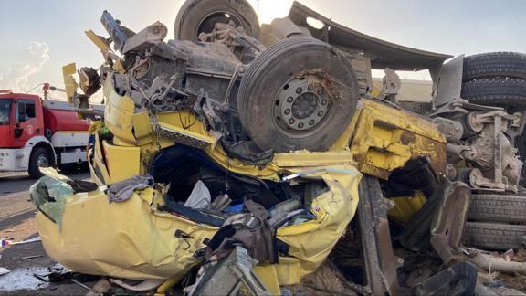 Gaziantep'te sürücüsünün kontrolünden çıkan kamyon, aynı şeritte ilerleyen TIR'a çarpıp üzerinde asılı kaldı. Kazada TIR sürücüsü Doğan Korkmaz (45) yaşamını yitirirken, 2 kişi de yaralandı.