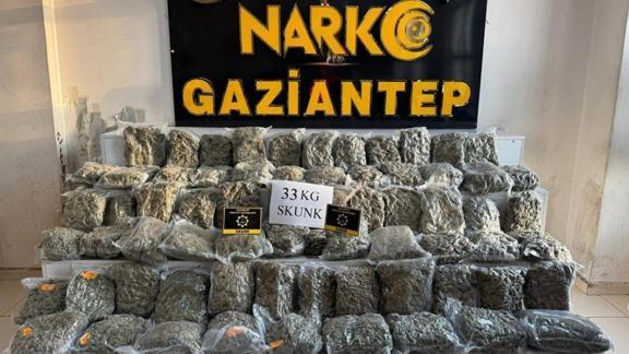 Ekipler, belirlenen araçta yaptıkları aramada 33 kilo 500 gram skunk, 450 gram esrar ele geçirdi, 1 şüpheliyi yakaladı.