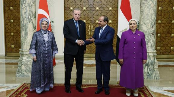 Başkan Recep Tayyip Erdoğan, Suudi Arabistan temaslarının ardından dün Mısır'ı ziyaret etti. Başkan Erdoğan, başkent Kahire'de Cumhurbaşkanı Abdulfettah es-Sisi tarafından resmi törenle karşılandı. Al-İttihadiye Sarayı'nda görüşen liderler, ikili ilişkilerin yanı sıra Gazze, Suriye, İran, Sudan, Somali ve Afrika'daki gelişmeleri ele aldı.
