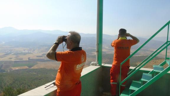 Kahramanmaraş Orman Bölge Müdürlüğüne bağlı Nurdağı İşletme Şefliğine ait Emirtepe Yangın Gözetleme Kulesi'nde görevli personel, olası yangın risklerine karşı gece gündüz nöbet tutuyor.