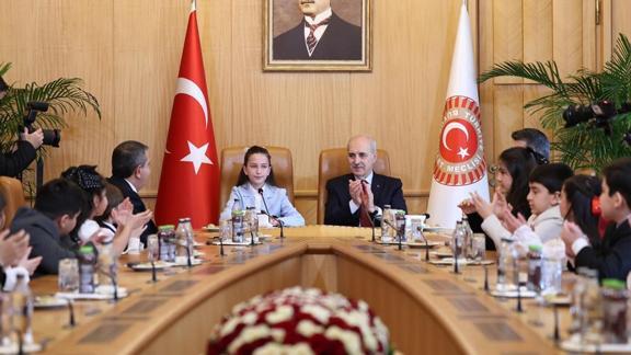 Meclis Başkanı Kurtulmuş, 23 Nisan Ulusal Egemenlik ve Çocuk Bayramı nedeniyle Milli Eğitim Bakanı Yusuf Tekin ve beraberindeki öğrencileri TBMM Başkanlık Divan Salonu'nda kabul etti. Kurtulmuş, bayram geleneği kapsamında koltuğunu Semiha İsen Ortaokulu 6. Sınıf öğrencisi İnci Yıldız Şentürk'e bıraktı.