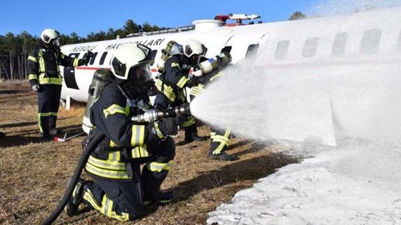 Tatbikatta, senaryo gereği Kastamonu-İstanbul seferine hazırlanan yolcu uçağı kalkış esnasında ormanlık alana düştü.