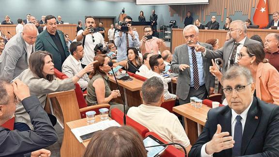 İzmir Belediye Meclisi'nde CHP'li ve AK Partili üyeler arasında soru önergesi okutma tartışması yaşandı.