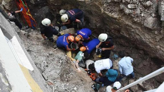 Omuzlarına kadar göçük altında kalarak yaralanan Yusuf Aksakal (19) ile Irak uyruklu Hamid Jasim Hamadi'nin(53) kurtarılması için bölgeye ekipler sevk edildi.