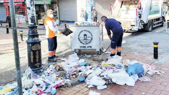 İBB'nin de destek verdiği çalışmalar kapsamında, konteynerlerin çevresine taşan çöpler, iş makineleriyle toplanarak kamyonlara yüklendi. Belediye işçileri de, çevreye dağılan çöpleri süpürerek temizledi.