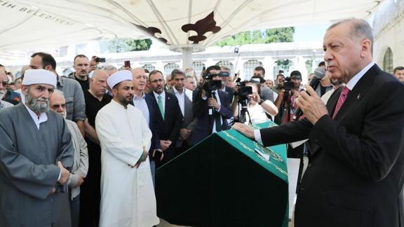 Cenazede cemaate seslenen Başkan Erdoğan, "Şu anda musalla taşında bulunan Mehmet Nimet Kaya ağabeyimizi buradan Hakk'a uğurluyoruz. Her nefis ölümü tadacaktır. Dönüş Allah'a. Ben Nimet ağabeyi Unkapanı'ndan tanırım. O zaman ben de gıda piyasasında çalışıyordum. Hacı Nimet ağabeyimiz de gıda toptancılığı yapıyordu. Oradan gelen bir hukukumuz var. Ehl-i hal bir ağabeyimizdi. O günden bugüne de hukukumuzu devam ettirdik ve bugünlere geldik. Böyle bir eceli kaza ile şimdi Hakk'a uğurluyoruz. Tezkiyeler yaptık. Yarın sabah itibariyle de Tillo'ya kendi topraklarına yolcu edilecek. Hepinizden bu gösterdiğiniz ilgi alaka sebebiyle Allah razı olsun diyorum. Allah için Nimet ağabeyimizi çok sevdik. O da bizi sevdi. Bayramlar gelir geçerdi, muhakkak birbirimizi arardık. Böyle de bir hukukumuz vardı. Rabbim bu hukukumuzu sevgili habibinin sancağı altında buluşmayı da haşr cem olmayı da bizlere nasip eylesin. Fazla söze hacet yok. Tekrar hep birlikte ruhu için El-Fatiha" ifadelerini kullandı.