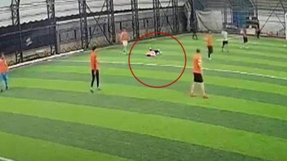 Olay, halı sahanın güvenlik kamerasınca kaydedildi.