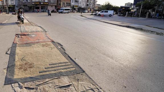Toroslar'a bağlı Akbelen Mahallesi'nde de CHP'li Mersin Büyükşehir Belediyesi yaklaşık 25 gün önce mahallede altyapı çalışması yaptı. Sonrasında açılan çukuru kapatıp, üzerine asfalt dökmek yerine mucur ve toprak döküp, sokağı da olduğu gibi bıraktı. Vatandaşlar, bozuk ve tozlu yoldan korunmak için sokaklara halı serdi. Adana'da ise aradan yaklaşık 6 ay geçmesine rağmen, hâlâ yollarının asfaltlanmamasına tepki gösteren vatandaşlar, "Sanki Hindistan sokaklarında yaşıyoruz" dedi.