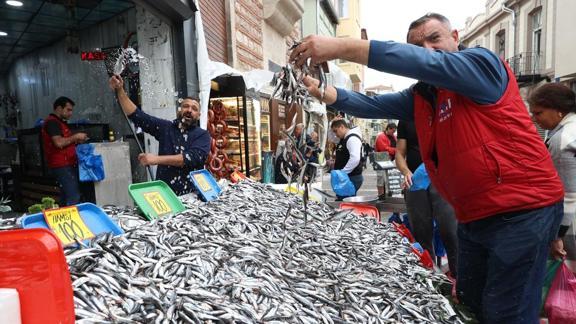 Edirne Balıkpazarı'nda sabah saatlerinden itibaren hamsi almak isteyen vatandaşlar tezgahlarda yoğunluk oluşturdu.