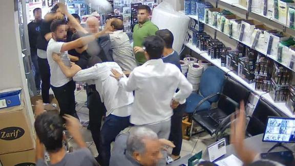İş yeri, cadde ve otel önünde devam eden kavgada taraflar, ellerine geçirdikleri malzemelerle birbirlerine saldırdı. İhbar üzerine bölgeye polis ve sağlık ekipleri sevk edildi. 7 kişinin yaralandığı kavgayı esnaf, vatandaşlar ve polis ekipleri güçlükle yatıştırdı. İş yeri ve otel önünde güvenlik önlemi alan polis, 8 şüpheliyi gözaltına aldı. Taraflar karakola giderek birbirlerinden şikayetçi oldu.