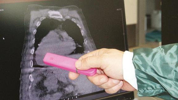 Dr. Gökhan Aydın, dünyada ilk kez karşılaşılarak: "Ben de klinik hayatımda ilk defa gördüm. Hastanın bize karaciğer sirozu bulgularıyla başvuruyor. En önemli bulgularda nefes darlığı, karında sıvı, toplanması ve halsizlik şikâyeti" dedi.