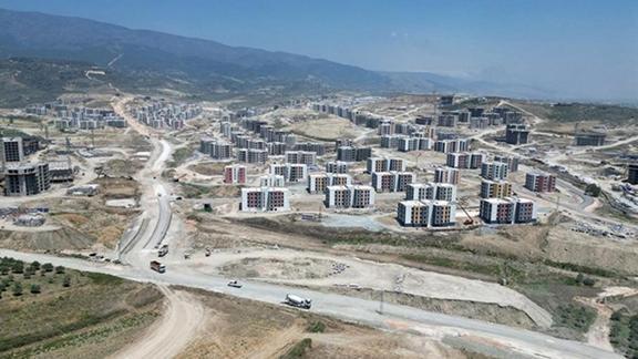 Hatay'ın merkez Antakya ilçesi Dikmece Mahallesi'nde 6 Şubat 2023'teki depremlerden etkilenen afetzedeler için 10 bin 335 kalıcı konutun inşası sürüyor.