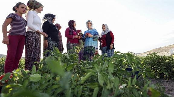 Emine Erdoğan, daha sonra çiftçi kadınlarla hatıra fotoğrafı çektirdi.