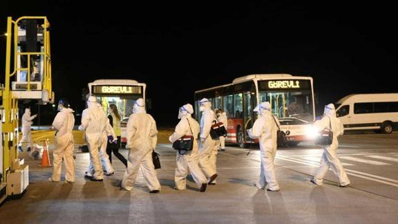 Uçağa giren ekiplerce pasaport kontrolü yapılan vatandaşlar, sağlık kontrolünden de geçirildi. Apronda bekletilen otobüslere bindirilen vatandaşlar, 14 günlük karantina sürecini geçirecekleri Gençlik ve Spor Bakanlığına bağlı öğrenci yurduna götürüldü.
