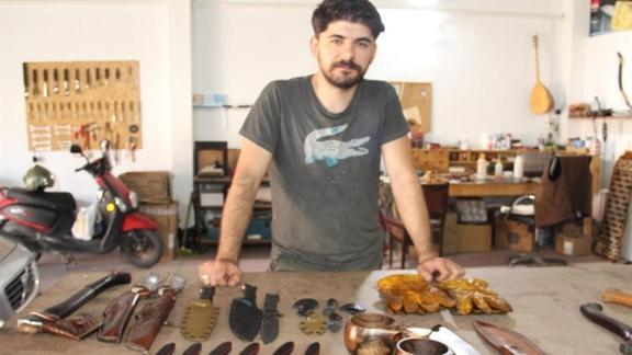 Hobi olarak başladığı işi bir meslek olarak sürdürdüğünü belirten Muhammed Furkan Gürci, "Öğrenciyken kamp yapıyordum. Kampta kullanacağım malzemeleri koymak için deriden kılıflar yapmaya başladım. Kampta kullandığım malzemeleri bir zaman sonra kendim yapmak istedim. O şekilde hobi olarak başladı. Ahşaptan malzemeler yaptım. Bıçaklar yapmaya başladım. Pandemi süresinde Erzincan'daki evimizde küçük bir atölye kurdum. Orada üretim yapmaya devam ettim. Sonra yaptığım ürünleri sosyal medyada paylaşınca çevremden de yaptığım ürünlere talep gelmeye başladı. Bu talepler doğrultusunda üretip satmaya başladım. Daha sonra KOSGEB'den 'İleri Girişimcilik Programı' desteği aldım. Erzincan merkezde küçük bir dükkan açtım. Yaklaşık 2-2,5 sene de orada üretim ve satış yapmaya başladım. İşler iyi gitti, oradaki dükkana sığmamaya başladık. Sonrasından organize sanayi bölgesindeki iş yerimize geçiş yaptık. Şu anda burada da genel olarak kamp malzemeleri, bıçak, balta, deri eldiven, ahşap malzemeler, kupa gibi ürünlerin üretimini yapıyorum. Türkiye'nin 81 iline aynı zaman da yurt dışında Avrupa'ya, Amerika'ya satış yapıyorum" diye konuştu.