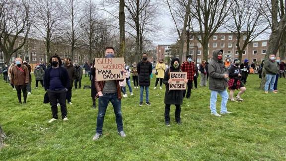BIJ1 Rotterdam Partisi tarafından düzenlenen protesto gösterisinde, 2019'da sosyal medya grubunda 16 yaşındaki Türk asıllı Hümeyra E'nin ölümüyle ilgili, "bir Türk daha azaldı" ifadesini kullanan, azınlıklara, göçmenlere ve Afrikalılara yönelik ayrımcı yorumlarda bulunan polislerin görevden ihraç edilmesi istendi.
