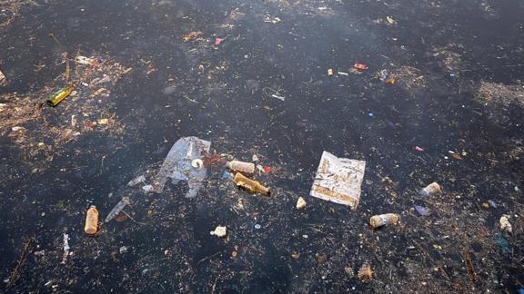 Çok sayıda plastik, ambalaj ve evsel atık, İBB tarafından işletilen İstmarin'de bulunan yatların çevresinde de birikintiler oluşturdu.