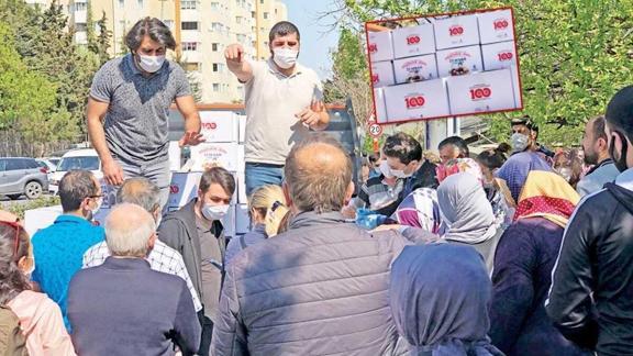 Ancak vatandaşlar kolilerden alabilmek için kamyonetin arkasında yığıldı. Kolilerin dağıtımı sırasında sosyal mesafe kuralı hiçe sayıldı. Vatandaşlara görevliler kolileri kamyonet kasasından atarken bazı çevre sakinleri de ‘böyle çağ dışı yardım dağıtımı mı olur’ diye tepki gösterdi.