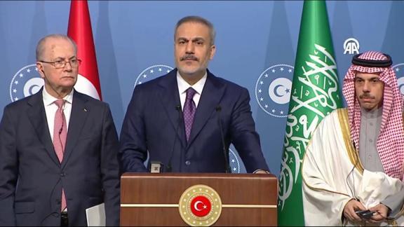 İnsani yardımların Gazze'ye kesintisiz girişinin bir an önce sağlanması gerektiğini vurgulayan Fidan, "Filistinlileri ana vatanlarını terk etmeye zorlayan her türlü planı reddediyoruz. Arap Ligi tarafından kabul edilen Gazze'nin yeniden inşasına dair planı destekliyoruz. 1967 sınırları temelinde başkenti Doğu Kudüs olan bağımsız ve egemen Filistin devletinin kurulmasını destekliyoruz. Uluslararası toplumu barışın tesisi için her türlü desteği vermeye çağırıyoruz." diye konuştu.