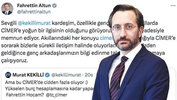 İletişim Başkanı Altun bu paylaşım üzerine şu ifadeleri kullandı: "Gençlerimizin CİMER'e ilgisinin olduğunu görüyoruz, bu taleplerini karşılamaya çalışıyoruz."