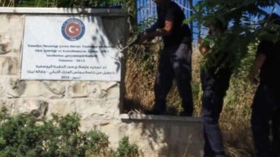İSRAİL POLİSİ KUDÜS'TEKİ MEZARLIKTA BULUNAN TİKA TABELALARINI SÖKTÜ