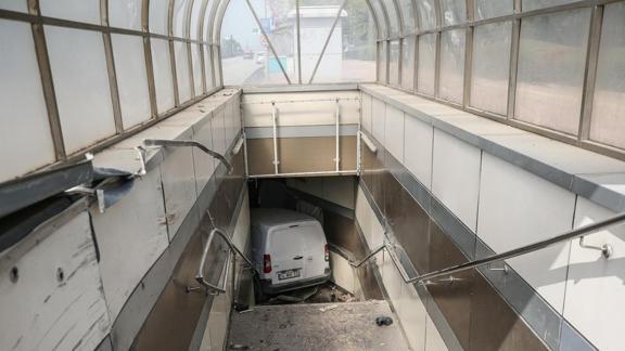 Sürücüsünün kontrolünden çıkan araç, Bağlarbaşı Esentepe Metro İstasyonu alt geçidinin merdivenlerine girerek sıkıştı.