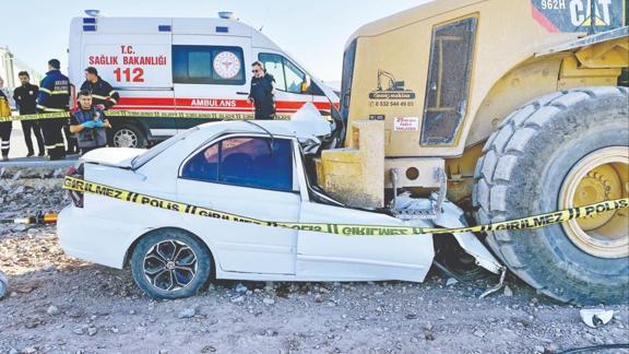 Aksaray'da Yakup Altınkaya'nın (30) kullandığı otomobil kontrolden çıktı; yol çalışması yapılan trafiğe kapalı alana girdi. Hızla ilerleyen araç, park halindeki iş makinesine arkadan çarptı.