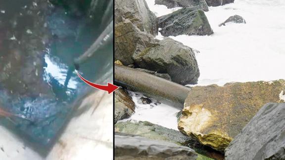 Mahalle sakinlerinden Mert Akman, "Önceden bu boru sahile daha yakındı. Gözüküyor diye boruyu buraya kadar uzatmışlar" dedi.