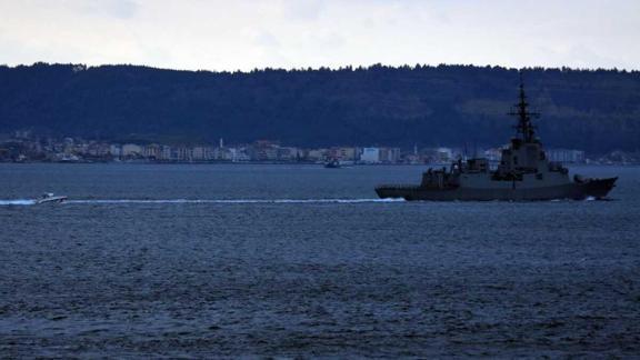 Boğazdan geçişi sırasında savaş gemisine, Türk Sahil Güvenlik botları eşlik etti.