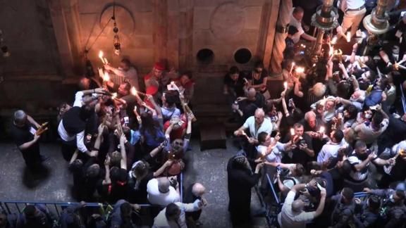 İsrail, işgal altındaki Doğu Kudüs'te bulunan Kıyamet Kilisesi'nde "kutsal ateş" ayinine katılmak isteyen bazı Ortodoks Hristiyanlara engel oldu.