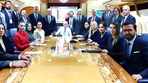 Başkan Erdoğan, KKTC ziyareti sonrası uçakta aralarında 24 TV Genel Yayın Yönetmeni Ömer Özkök, Akşam Gazetesi Yazarı Kurtuluş Tayiz'in de bulunduğu gazetecilerin sorularını cevapladı.