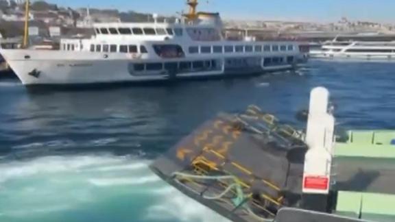 Harem-Sirkeci hattında sefer yapan arabalı vapur, önce Sirkeci İskelesi'nde demirli bir vapura, ardından iskeleye çarparak durdu.