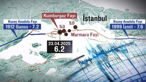 Rapora göre, 23 Nisan 2025'te saat 12.49'da Marmara Denizi'nin orta kesiminde yer alan Orta Marmara Sırtı'nda yerin 13 kilometre derinliğinde meydana gelen deprem yaklaşık 13 saniye sürdü.