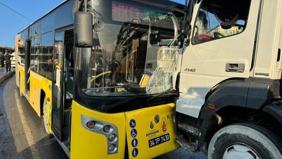 Sürücülerinin ismi öğrenilemeyen 34 TP 7430 plakalı İETT otobüsü, Şahintepe Mahallesi Eski İstanbul Caddesi'nde 34 NA 5713 plakalı beton pompası aracıyla çarpıştı.