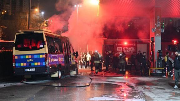 Cendere Caddesi'ndeki bir akaryakıt istasyonunda park halindeki minibüste henüz belirlenemeyen nedenle yangın çıktı.