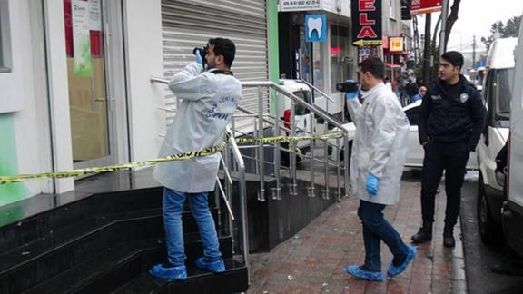 Olay yeri inceleme ekipleri, banka şubesinde inceleme yaptı.