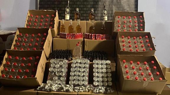 Evde yapılan aramada şişelenmiş 300 litre sahte içki, 100 litre etil alkol, çok sayıda boş şişe ve bandrol ele geçirildi.