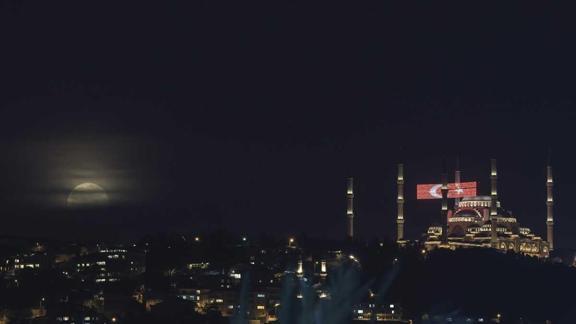 İstanbul'da dolunay manzaraları görüntülendi.AA'nın haberine göre, </b>İstanbul'da akşam saatlerinde bulutların arasında beliren dolunay, Çamlıca Camisi ile güzel görüntüler oluşturdu.